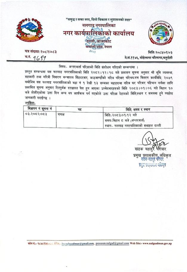अन्तरवार्ता परिक्षाको मिति संशोधन गरिएको सम्बन्धमा | (गणक)