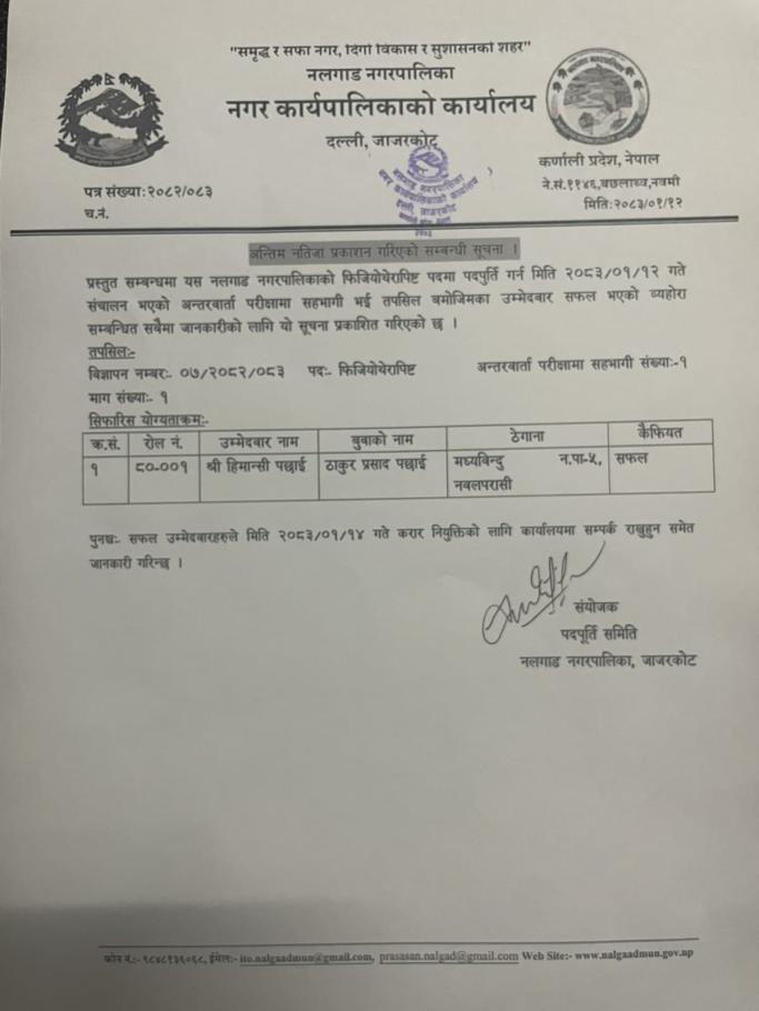 नतिजा प्रकाशन गरिएको सम्बन्धी सूचना | (फिजियोथेरापी)