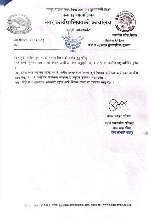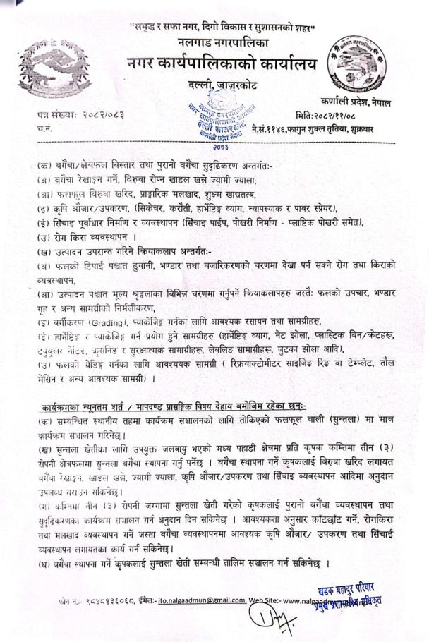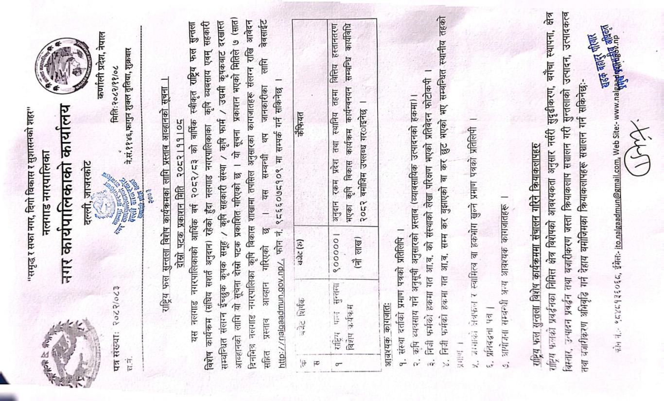 राष्ट्रिय फल सुन्तला विशेष कार्यक्रमका लागि प्रस्ताव आव्हानको सूचना ।