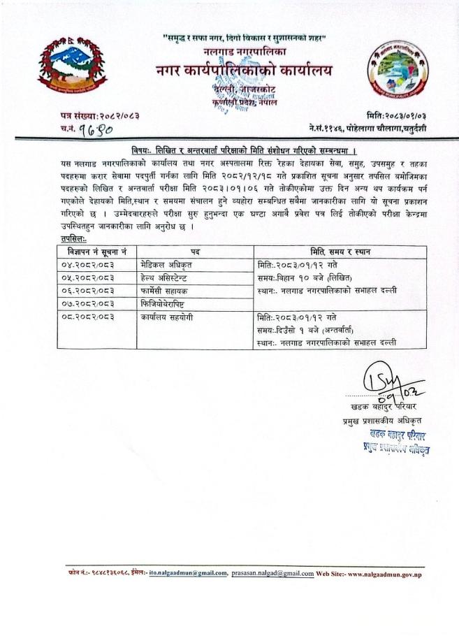 लिखित र अन्तरवार्ता परिक्षाको मिति संशोधन गरिएको सम्बन्धमा ।