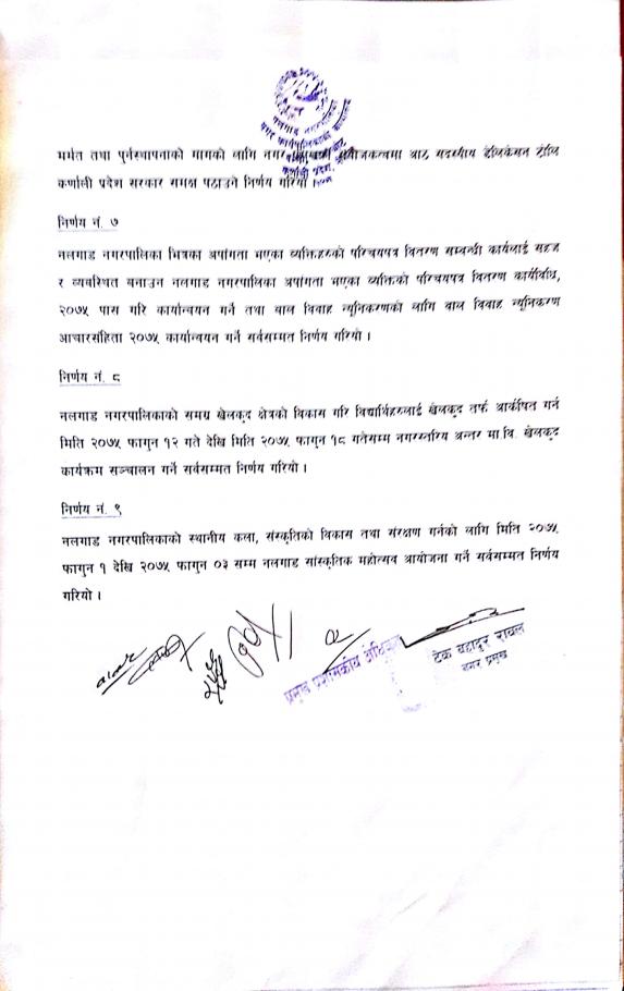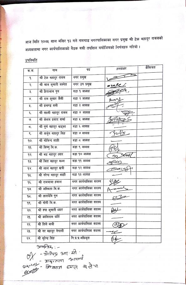 नगर कार्यपालिकाकाे बैठक २०७५/०८/१३
