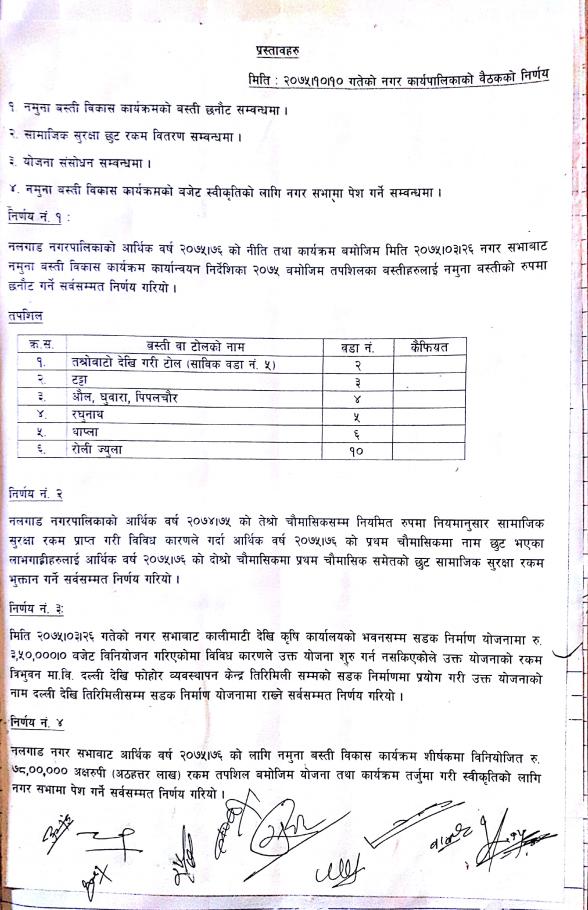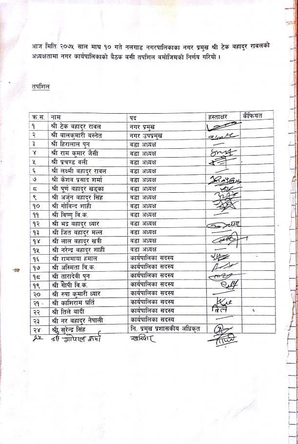 नगर कार्यपालिकाकाे बैठक २०७५/१०/१०