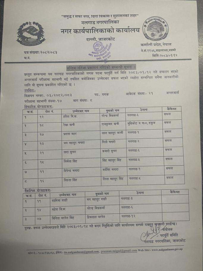नतिजा प्रकाशन गरिएको सम्बन्धी सूचना | (गणक)