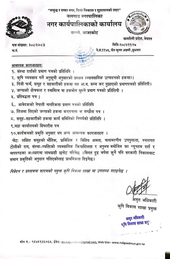 विभिन्न कार्यक्रमका लागि प्रस्ताव आव्हानको सूचना ।