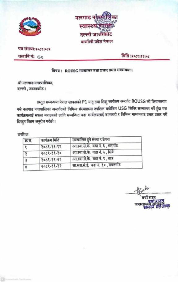ROUSG सञ्चालन तथा प्रचार प्रसार सम्बन्धमा ।