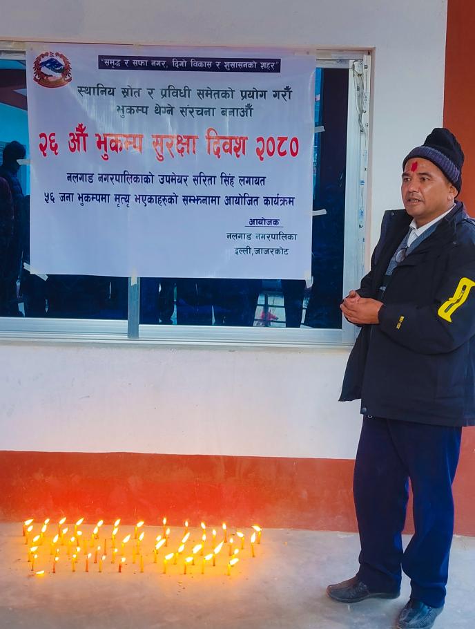 २६ औ भुकम्प सुरक्षा दिवस २०८० नलगाड नगरपालिकाको उपमेयर सरिता सिंह लगायत ५६ जना मृत्यु भएकाहरुको सम्झनामा दिप प्रज्वलन कार्यक्रम गरियो ।